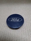 This is a Ford Expedition / F-150 OEM alloy wheel center cap in dark blue with silver letters. Made of plastic, this glossy finish cap features the Ford emblem and measures approximately 3 inches in outside diameter. It is designed for easy installation without the need for tools, car wash safe, and suitable for placement on the rear, left, front, or right side of the vehicle. The manufacturer part numbers include FL34-1A096-BA, FL34-1A096-GA, and FL34-1A096-FA, with interchange part number 560-3995 and OE/OEM part number FL3Z-1130-B.