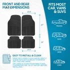 BDK all weather long lasting heavy duty PVC rubber mats Protects vehicle's original carpet against Mud, dirt, dust and spills Durable channel Construction holds water, Mud and dirt Front mats: 28 x 18 inches, rear mats: 16.5 x 18 inches Easy trimmable for a custom fit to conform to your particular vehicle All-weather car floor mats durable and waterproof car floor liners heavy-duty car mats designed for maximum protection custom-fit floor mats for cars trucks and SUVs anti-slip car mats with secure grip easy-to-clean vehicle floor mats spill-resistant car floor protectors stylish and functional car mats mud-resistant and stain-proof floor liners odorless rubber car mats for fresh interior protection front and rear seat floor mats universal car floor mats rugged car mats for any season.