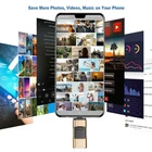 Description: - The newly designed mobile phone USB flash drive with built-in smart IC supports self-identification and upgrade to ensure long-term stable operation. - USB 3.0 and iphone 8-PIN dual interface, support plug and play. - Compatible with new models such as iPhone, iPad, and iPod. - It supports most file formats and can be transferred freely between iPhone/iPad and PC. - Stream music, play music directly, without taking up any space on your iPhone/iPad. - Play programs independently, and support desktop background music playback. - Separately connect to the PC and become an ordinary U disk. Package Included: 1 X Flash Drive for iPhone/iPad Feature: 1. Recording IOS itself system cannot be directly removed the tape with each other, Only can transfer out by Email, Now you can put the data transfer out without network as long as using the recording function of iflashdrive. 2. Mobile office (you can copy, delete, move and edit supporting files, etc.) Apple IOS system software can quickly modify the file flash disk, which can be transferred out via Email or 3G at any time. Make your office faster and more portable. Supports PDF, Word, Excel, PPT, HTM, Html, etc. 3. One-click contact backup IOS system cannot back up the directory, or even delete the backup directory without a computer network, but ilashdrive can achieve simple backup and recovery operations without the need for a network. 4. Take photos/videos on the flash drive. You can take photos and videos with your iphone and store them in a flash drive. 5. Copy photos from the album. You can copy photos to "external storage" (flash drive) or "local storage" (iPhone). 6 . Play video/music. Can play video/music on flash drive. Video support: Mp4, Mobile, RM, RMVB, M4V, FLV, WMV, AVI. Music support: Mp3, AIF, WAV, AAC, WMA, etc. Description: - The newly designed mobile phone USB flash drive with built-in smart IC supports self-identification and upgrade to ensure long-term stable operation. - USB 3.0 and iphone 8-PIN dual interface, support plug and play. - Compatible with new models such as iPhone, iPad, and iPod. - It supports most file formats and can be transferred freely between iPhone/iPad and PC. - Stream music, play music directly, without taking up any space on your iPhone/iPad. - Play programs independently, and support desktop background music playback. - Separately connect to the PC and become an ordinary U disk. Compatible with the following models: For iPhone X / XR / XS / XS Max / 8/8 Plus / 7/7 Plus / 6 / 6s / 6 Plus / 6s Plus / 5 / 5S / 5C /iPad Air/ Air2 / iPad 4 / iPad mini / iPad mini 2 3 4 / iPad Pro / iPod touch 5 IOS8 or above, Windows XP, Windows 7, Windows 8, Windows 10, Window OSX, Linux.Mac. System requirements: download a free mapping program from the App Store Note: Android Type C is not supported Package Included: 1 X Flash Drive for iPhone/iPad ❣Due to the influence of light, screen, monitor, angle and other factors when the picture is taken, there may be slight chromatic aberration, please understand!