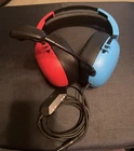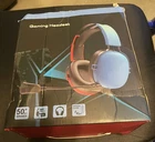 New in an opened box is this pair of gaming headsets. Red and blue in color. Features: Flexible microphone, audio volume control, audio mute switch, microphone mute switch, powerful duel 50 mm drivers, noise cancellation microphone, immersive surround sound, 360 degree voice pick up, multi platform compatibility.