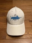 This Guy Harvey Trucker Hat features a blue and white color scheme with a fish-themed logo, perfect for casual outdoor adventures. Made of a lightweight polyester blend with a mesh back for breathability, this adjustable snapback hat is ideal for fishing enthusiasts.