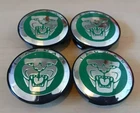 This product is a set of four wheel center caps for Jaguar vehicles. The caps have an outside diameter of 59mm and an inside diameter of 50mm. They are made of ABS and aluminum material and have an anti-fade protection finish in green color. The caps are flexible, lightweight, and car wash safe. They are easy to install and come with a 1-Month manufacturer warranty. The emblem type is Jaguar and they are suitable for placement on the rear, left, front, and right of the vehicle.