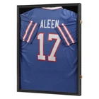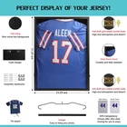 Wood Display Case RELIABLE QUALITY - Classic black wooden frame, matte anti-fading technology, makes the frame durable and long service life. Gold-plated anti-theft lock, high transparency and 98% UV resistant acrylic panel and black velvet lining can better protect your precious sports collections or souvenirs. LARGE JERSEY FRAME - The jersey display case with outer size 31"1/4 x 23"1/4 x 1"1/2 and Inner size 30"1/2 x 22"1/2 x 1". The large size frame can adapt to different sizes of clothing, whether football, basketball, baseball and other jerseys can be loaded. Three Displaying Options-Easy to Display - The two kinds of hanger and pin board allow you to display your jersey in 3 different ways.The wood hanger works better for sleeveless jersey like basketball shirt. The iron Hanger for long-sleeved jersey is for the people who do not want to do the pin board .While the pin board display a tight wrinkle free for long-sleeved jersey such as football jersey. SAFETY PACKAGE - The jersey display shadow box is wrapped with 360 degree foam, so that the product can be fully protected to prevent damage during transportation. Acrylic panels are attached with a layer of film to prevent them from being broken or scratched during transportation. Jersey Frame Display Case This furniture grade Jersey Frame Display Case cabinet is of beautiful design and construction, very detailed and attractive, but also very affordable. Protect your precious collections from dust, damage and inquisitive fingers with our Scratch Resistant and Anti Theft Gold Lock fitted Acrylic Door. The 98% UV protection feature ensures no fading of your jersey when exposed to natural light. Always get a clear view of your collection inside the Matt Black Finish Lockable cabinet jersey. Black felt fabric background creates a stunning contrast for the jersey you are displaying. The jersey display box is surrounded 360 degree by foam to get it fully protected.