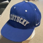 Show off your love for the Kentucky Wildcats with this Nike fitted hat cap. The blue cap features an embroidered design with the team's logo and name, making it the perfect accessory for any fan. It's officially licensed and made from high-quality materials, ensuring that it will last for years to come. This cap is perfect for basketball fans, especially those who support the Kentucky Wildcats. It's designed for men and comes in size 8, making it a great gift for any fan. The hat is perfect for regular season games and is sure to turn heads during the NCAA Tournament. Get yours today and show off your love for the Kentucky Wildcats! This hat is in worn preowned condition with some staining on the inside brim of the hat. Please see ALL photos for a better idea on condition, and any details to the hat.