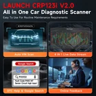 LAUNCH CRP123I V2.0 OBDII Scanner Diagnostic Tool Engine ABS SRS AT Code Reader LAUNCH OBD2 Scanner CRP123I V2.0 , Diagnostics Tool for Engine, ABS, SRS, AT, with 7 Resets, Oil/Throttle/SAS/EPB/DPF/ABS Bleeding, Battery Test, Lifetime Free Updates Top Reason to Choose LAUNCH CRP123i V2.0 ● 4 Systems Diagnostic Scan: Read/Clear fault codes and turn off the warning light of Engine /Transmission / ABS /SRS System. ● 7 Reset Functions : SAS Reset / Oil Service Reset / ETC Reset / EPB Brake Reset / DPF Regen / BMS Reset ● Full OBDII Functions: To Pass the Emission/Smog Test ● AUTO-VIN: only supports some vehicles, some vehicles are not compatible. If your vehicle can not use this function, please try to select the vehicle software manually. ● 4 in 1 live data stream in graph: (such as engine speed, transmission temperature, etc.), retrieve vehicle information and switch the MIL. ● Lifetime Free Update: one-click update via WiFi, fixes bugs and updates vehicle manufacturers to Latest models. ● Added Shopping "Mall”: in Mall , it can subscribe reset function and Full system of the car , each one is USD$49.95/pc . ● Hardware: Android 8.1 Operation System, 5'' Touch Screen, 6100mAh Battery,2GB+32GB Memory Item Parameter: LCD Screen: 5 Inch Touch Screen Operation System: Android 8.1 Battery: 6100mAh Battery RAM+ROM: 2GB+32GB OBD II interface input voltage: 9V~18V DC input voltage: 5V Connection:standard 16 PIN OBD diagnostic interface Working temperature:-10°C to 50°C Storage ambient temperature:-20°C to 70°C Dimension:228*125*34.5(mm) Weight:<565g Packing list: 1 x Creader Professional 123i v2.0 handset 1 x OBD II diagnostic cable 1 x DC 5V charging cable 1 x User manual 1 x Carrying bag Supported Car Brands The code reader has an expanded coverage for more than 57 suitable vehicle makes to access the engine, AT, ABS and airbag 4 Systems Diagnosis (Lifetime Free Use ) Engine System: The diagnostic tool can help detect the engine ignition, fuel injection, air and fuel ratio, and exhaust emission conditions in Engine system to enhance vehicle performance, save energy and reduce exhaust emission. Transmission System: It makes great sense in the safe driving when your car is slipping or difficult to shift. This diagnostic scanner can figure the problems out via reading codes in the Transmission system, or check the health status via live data viewing. ABS System: Diagnosing an ABS problem should always start with a visual inspection of all brake components, next you will need to retrieve ABS codes to tell you where the problem is, and this is what this scanner does for you. SRS Airbag System: SRS, safety restraint system, is made up of impact sensors, a control module, and the airbags themselves, and this diagnostic device can detect every electronic parameter to check its health status. Support 7 Service Reset: 1> Oil Reset Service This function enables you to reset the oil service for the engine oil life system,which calculates an optimal oil life change interval depending on the vehicle driving conditions and weather events. lt needs to be performed in the following cases: 1. lf the service lamp is on, run car diagnostics first for troubleshooting.Afterthat, reset the driving mileage or driving time, so as to turn off the servicelamp and enable a new driving cycle. 2. lf the service lamp is not on, but you have changed the engine oil or electric appliances that monitor oil life, you need to reset the service lamp. 2> Electronic Parking Brake Reset This function enables you to reset the brake pad after replacing the brake pad.lt needs to be performed in the following cases: 1.The brake pad and brake pad wear sensor are replaced. 2.The brake pad indicator lamp is on. 3.The brake pad sensor circuit is short, which is recovered.4.The servo motor is replaced. 3> ABS Bleeding This function allows you to perform various bi-directional tests to check theoperating conditions of Anti-lock Braking System(ABS). lt needs to be performed in the following cases: 1. When the ABS contains air. 2. When the ABS computer, ABS pump, brake master cylinder, brake cylinder,brake line, or brake fluid is replaced. 4> Battery Maintenance System Reset This function enables you to perform a resetting operation on the monitoringunit of vehicle battery, in which the original low battery fault information will becleared and battery matching will be done. lt needs to be performed in the following cases:1. The main battery is replaced. 2. The battery monitoring sensor is replaced. 5> Diesel Particulate Filter (DPF) Regeneration This function enables you to clear PM(Particulate Matter) from the DPF filterthrough continuous combustion oxidation mode (such as high temperatureheating combustion,fuel additive or catalyst reduce PM ignition combustion)to stabilize the filter performance. lt needs to be performed in the following cases: 1. The exhaust back pressure sensor is replaced. 2. The PM trap is removed or replaced. 3. The fuel additive nozzle is removed or replaced. 4. The catalytic oxidizer is removed or replaced. 5. The DPF regeneration MlL is on and maintenance is performed. 6. The DPF regeneration control module is replaced. 6> Electronic Throttle Position Reset This function enables you to make initial settings to throttle actuators andreturns the learned values stored on ECU to the default state. Doing so canaccurately control the actions of regulating throttle (or idle engine) to adjust theamount of air intake. 7> Steering Angle Calibration This function enables you to reset the steering angle,after replacing thesteering angle position sensor,replacing steering mechanical parts (such assteering gearbox,steering column, end tie rod, steering knuckie), performingfour-wheel alignment, or recovering car body. To reset the steering angle, first find the relative zero point position for thecar to drive in straight line. Taking this position as reference,the ECU cancalculate the accurate angle for left and r