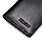 The Advantage: Supple full grain nappa leather, handmade in Italy by senior craftsmen with authentic quality. Our genuine leather is rich looking, smells wonderful and smooth texture Light and Compact: 4.06"H x 2.8"W x 0.55"D. Small size is perfect to fit in your front shirt pocket or handbag High Capacity: holds up to 25 business cards or 15 credit cards depending on thickness Well Built: 1 Large compartment for business cards or money, 1 interior slot for credit card, 1 clear plastic ID window What You Get: Leather Business Card Holder, in an exact-fitting and classy matte-black box