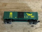 This Lionel Santa Fe The Chief Box Car #16263 is a great addition to any model railroad collection. With its three-rail system and green color, it accurately represents the Santa Fe corporate roadname. The box car is made of plastic and features the transportation theme of the Santa Fe replica. It is compatible with O gauge tracks and will make a great display piece for any railroad enthusiast.
