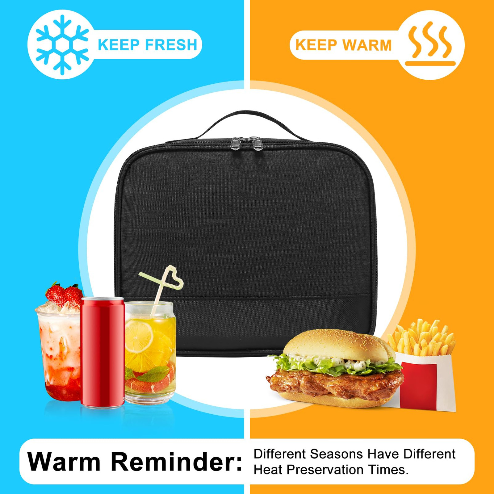 【Portable & Light-Weight Lunch Box】: This lunch bag is so Portable & Light-Weight that it perfect for everyday used by Men Women. 【Suitable Size】: The exact size (8.7x 4.5x 10.2in / 22 x 11x 26cm). Spacious enough to fit 6 cans of soda, or person’s lunch and more 【Perfect Size for person lunch】: The exact size (8.7x 4.5x 10.2in / 22 x 11x 26cm). With enough space to carry lunch for more than person, this lunch bag is perfect for outdoor 【 Easy to Clean & Waterproof】: The durable material of this lunch box makes it easy to clean and waterproof enough for travel 【Durable Lunch Bag】: Made with high-quality materials, this lunch box is designed to last, ensuring its longevity and value for money.