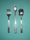 MORNING STAR Oneida Community Silverplate Baby 1-Fork & 2-Spoons 1948 Set of 3 Good condition Add a touch of elegance to your baby's mealtime with this beautiful set of three silverplate flatware pieces from Oneida Community. The set includes a fork, spoon, and teaspoon, all with the Morning Star pattern on the handles. The glossy finish and silver-plated material make this set a perfect addition to any family's collection. Your baby will love the Morning Star pattern, which is both charming and timeless. Make mealtime more enjoyable for both you and your little one with this exquisite set of flatware.