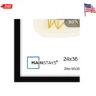 About this item Product details Accent your space with a favorite inspirational image or art piece using the Mainstays 24" x 36" Basic Black Poster Frame. It has a four-piece design that features a lightweight construction with a sturdy plastic front. This black Mainstays poster frame can be mounted to hang either vertically or horizontally. It flaunts a sleek and simplistic design that works well in both home and office settings. This lightweight poster frame is easy to use and can accommodate photo enlargements and other sheets that measure up to 18" x 24". It also has a durable plastic glazing to view artwork more clearly through the frame. Mainstays 24" x 36" Plastic Picture Frames, Black: Designed for posters, art prints and photo enlargements Made with polystyrene plastic Features 24" x 36" poster frame opening The Mainstays poster frame is suitable for vertical or horizontal wall displays Economical and lightweight Display portraits, panoramic photos, paintings and more Sleek black design Includes a hard backing to keep images flat during hanging Easy-to-use 4-piece frame Suitable for home, office and business use error: Specifications Assembled Product Weight 15 lb Brand Mainstays Size 24 x 36 Actual Color: Black