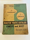 This is a antique master parts catalog for Continental Lincoln vehicles 1956-1959. It contains comprehensive information about the parts needed to repair and maintain your vehicle, as well as details about the publication year, type, format, language, and author. The catalog is a valuable resource for owners of these classic cars, providing them with the necessary information to keep their vehicles running smoothly. The publication name is Ford Motor Co., and the source language is English. This catalog is categorized under Dictionaries & Reference, Textbooks, Education & Reference, and Books & Magazines.