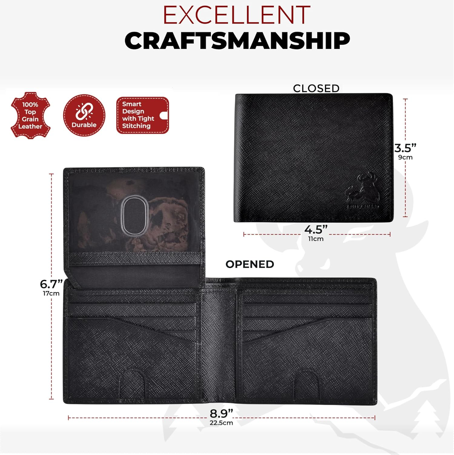 Fast Shipping Great Customer Support Satisfaction Guaranteed DESCRIPTION Shipping Shipping Shipping All domestic packages are shipped for Free (Unless other shipping method was selected during the checkout) Most items ship and arrive much sooner than the estimate delivery date. Usually within 2-3 days from payment. However, we have longer estimates to compensate for the occasional delay or supply chain breakdown. We do not accept P.O. BOXES - PLEASE PROVIDE A PHYSICAL ADDRESS Return Return Return In the event that you would like to return your purchase, we allow returns that are processed within the defined return date (the return date is to be found in the return policy/shipping and handling section) Please contact us for a return authorization and the return shipping address. Payment Payment Payment PayPal is our preferred method of payments it's the quickest, easiest and most secure way to pay for your goods or services online. PayPal offers buyer and seller protection should there be a problem. If you do not have a PayPal account, to get started and buy your first item with us is very easy. Simply click on the 'Buy It Now' button and follow the eBay checkout steps. Select PayPal as the payment method you then will be given the chance to enter your card details in to PayPal's secure checkout in order to pay for your order. Once the payment has been made, you will then be given the opportunity to make your own PayPal account to make paying for your items in the future very easy. Should there be a problem with payment please do let us know. Feedback Feedback Feedback Customer satisfaction is very important to us. If you have any problem with your order,please contact us and we will do our best to make you satisfied, please do not leave a negative feedback before we resolve your problem. We guarantee that your issue will be solved quickly. As long as you are happy with your purchase of , please leave us a positive feedback. Your feedback is very important to us it affects our search placement on eBay. We will leave a positive feedback for you in return automatically once we receive your feedback. Contact Us Contact Us Contact Us If you have any queries, please contact us via ebay. We usually respond within 24 hours on weekdays. Thank you for visiting our ebay store! RFID BLOCKING TECHNOLOGY: Keep your data, personal information and identity safe and secure during travel or work. We are very serious with our customer's personal security, which is why our wallet comes with cutting-edge RFID protection, which effectively prevents thieves from electronically accessing your personal and financial information by interrupting the radio waves of the scanners. SMART DESIGN: This bifold wallet for men has a unique easy to use and carry design with an impressive storage capacity: 1see-through Id, 11 credit card slots, with 3 easy-access card slots with thumb access,2-pocket money divider, 2 slip-in-pockets. With plenty of storage and simple access, this bifold wallet was crafted for efficiency and extra capacity. Great wallet for travel, outdoors, sports, bikers. Then take this beauty straight back to an executive meeting or a date ONE OF A KIND & LIGHTWEIGHT: At 3.5" x 4.5" our traditional men's wallet is light and compact yet boasts plenty of room and capacity. It was designed for the man on-the-go - the adult that appreciates handsome aesthetics, top-notch quality, functional and stylish design. This versatile, comfortable card case wallet holds all your valuables while traveling, working or when enjoying sports or outdoors. Fashionable, sleek wallet for business or outdoors. Supple, Genuine Saffiano Black Leather: Because You deserve the best in quality & craftsmanship, our wallet is made from premium Saffiano leather, which is equally luxurious as it is long-lasting. Saffiano is a textured leather, with a cross-hatch finish. This leather is praised for its durability, scratch resistant finish and elegant look. It's practical, easy to keep clean and great looking. Money-Back Guarantee: Your selection of our wallet is greatly appreciated. We highly value our customers and your satisfaction is our top priority. We trust that you'd love our bifold wallet and will use it for years to come. However, if for any reason you are dissatisfied, you can reach out to us. We will offer a total refund, or free replacement, whichever you prefer. Mens Bifold RFID Leather Wallet with Flip ID Black Saffiano Wallets for Men Click here to see description Fast Shipping Great Customer Support Satisfaction Guaranteed DESCRIPTION Shipping All domestic packages are shipped for Free (Unless other shipping method was selected during the checkout) We ship within two business days of payment, usually sooner Standard FREE shipping takes between 3-5 business days Expedited shipping takes between 2-3 business days Overnight shipping takes between 1-2 business days We do not accept P.O. BOXES - PLEASE PROVIDE A PHYSICAL ADDRESS We Ship Globally using ebay's GSP, the item is sent to a logistic center in KY and shipped from there to the rest of the world. International customers are responsible for all duties and taxes Contact your local authority for questions related to the amount of duties or taxes you will be responsible for Return In the event that you would like to return your purchase, we allow returns that are processed within the defined return date (the return date is to be found in the return policy/shipping and handling section) Please contact us for a return authorization and the return shipping address. Please contact us for a Return Merchandise Authorization (RMA) number. We advise you to use a reputable carrier service when returning your goods. Please pack all returns appropriately. We ship globally Via eBay's global shipping program (GSP). Thus we don't cover returns for items shipped globally. Buyers returning such items will be refunded ONLY for the item's cost and not for the shipping. please check the Voltag