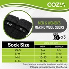 Product Description COZIA WOOLEN SOCKS Take on the toughest winters while keeping your feet warm and comfortable with Cozia thermal socks. COMFORTABLE WOOL SOCKS Cozia merino wool socks will never let your feet freez, always keeping them warm with a snug cosy fit.! They are flexible to your feet’s natural movement, don’t bunch up in one place, rather stay in position. These woollen socks are super soft and will make you feel like you are floating on clouds.. Hypoallergenic in design, these socks can be worn by those with different skin types. BREATHABLE THERMAL SOCKS These socks have in-built ventilation channels which improve air flow for enhanced comfort. With an ultra-breathable moisture control fiber technology, our socks wick away sweat and fight odors. The special wool blend naturally regulates temperature to keep feet warm in the coldest winter. FOR YOUR COMFORT VERSATILE SOCKS These socks can be worn for both formal and informal occasions. They pair well with different types of outfits for a chic look. Ideal for hiking, trekking, camping, and daily wear. PREMIUM QUALITY WOOL Made from a combination of 80% Merino wool, 15% polyester, 4% nylon, and 1% spandex. Extremely durable design will not fray even after multiple washes. MULTIPLE SIZES XS-S Fits Shoe Sizes: Men 2-4/Women 3-5 S-M Fits Shoe Sizes: Men 5-9/Women 6-10 M-L Fits Shoe Sizes: Men 10-13/Women 11-14 L-XL Fits Shoe Sizes: Men 14-16/Women 15-17