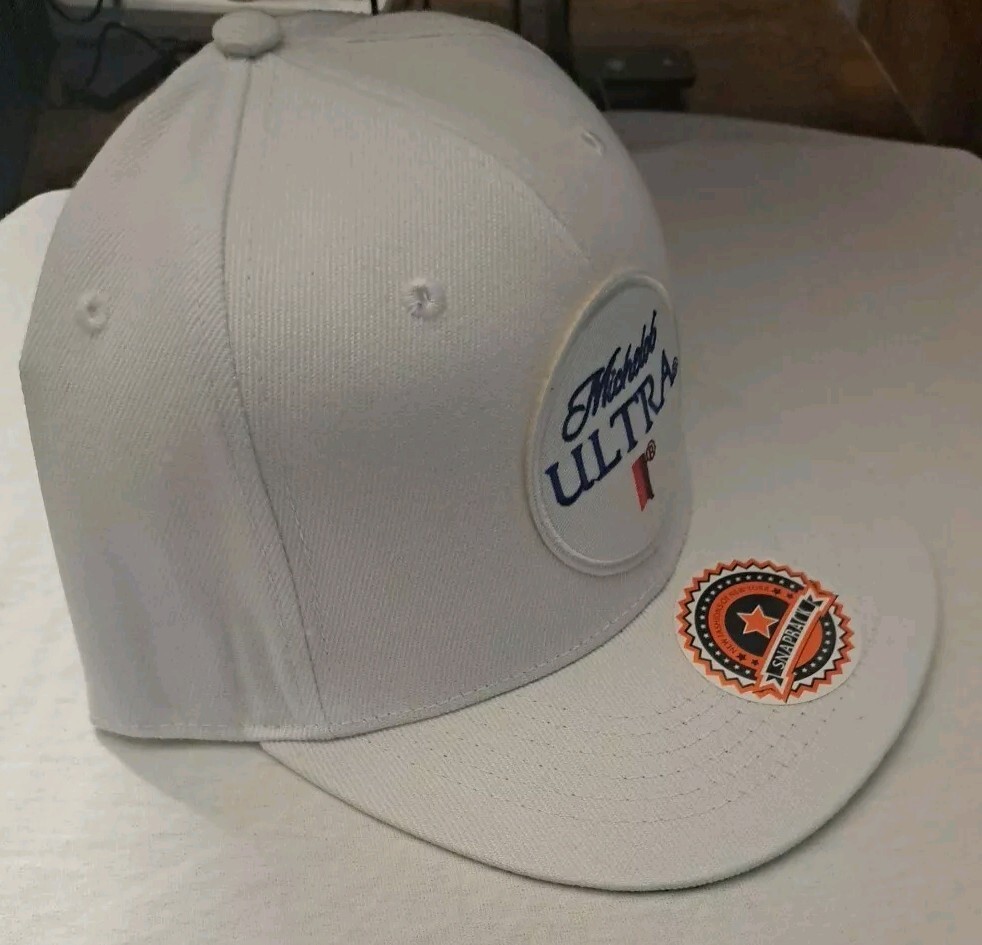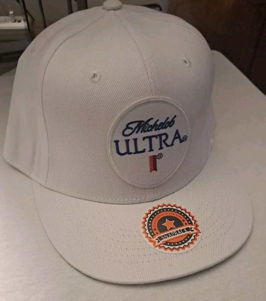 The Michelob Ultra White Snapback Hat is a stylish accessory designed for men or women. The hat features a vibrant blue color that adds a pop of brightness to any outfit. Perfect for casual wear, this hat is a great addition to anyone's collection of accessories. The snapback design also ensures a comfortable and adjustable fit for all-day wear.