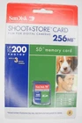 NEW SanDisk Shoot & Store 256MB MEGABYTE SD Camera Memory Card Description: Condition: NEW This memory card is in NEW unused condition. There is some paper torn off the surface of the back of the packaging. There is some additional wear to the packaging but the card is still sealed. This card is in MEGABYTES NOT GIGABYTES. Please verify compatibility before purchasing. Returns are not accepted if the card has been used. Condition: EX+ "Excellent Plus" Exceptionally nice. May have slight wear on finish but visible only under close inspection. EX "Excellent" Shows moderate wear. BGN "Bargain" Shows more than average wear. UG "Ugly" Very rough looking.