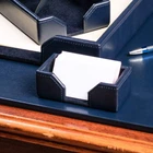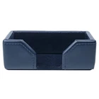 This business is the best way to keep your cards handy, crease-free, and proudly displayed. The simple, elegant style of this navy blue bonded leather piece adds a subtle, high-end look to your desk. With a felt lining and backing, this business has a neatly finished feel, and is safe for use on any desktop surface. New Navy Blue Bonded Leather Holds standard US 3. 5" wide business cards Inner felt and bottom lining
