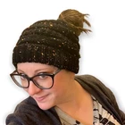 New Black Confetti Beanietail Ponytail Messy Bun Ribbed Beanie Hat Cap Elastic. Super thick and warm Black and colorful “confetti” colored acrylic yarn goes with multiple outfits Ribbed design fits snug and comfortably Elastic band where ponytail comes through