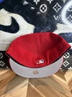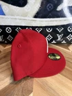 This New Era hat features a red Rahnni dome with an upside-down logo design, in a size 7 1/4. The hat is made of 100% polyester and is part of the Prociety Phillies collection. It is a rare and classic piece suitable for men, with a solid black color. The hat is a stylish addition for various occasions and seasons, representing a collaboration between New Era and Rahnni.