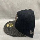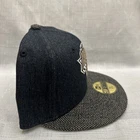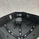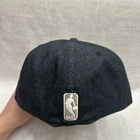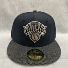 This is a New York Knicks baseball cap by New Era in size 7 1/8. It is made of a denim fabric in black and gray colors. The hat features the NBA logo and is designed with a solid pattern. Made from a blend of polyester, wool, and acrylic, it is lightweight and breathable, suitable for casual wear in winter, summer, and spring.