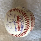 Attention all Yankees and/or baseball enthusiasts. This 1998 Yankees World Series Ball is still in its original box as it was received when purchased. It includes the Certificate of Authenticity and it contains 21 signatures. The team members who signed this ball are: Homer Bush, Ramiro Mendoza, Orlando Hernandez, Shane Spencer, Joe Torre, Bernie Williams, Mike Stanton, Jeff Nelson, Luis Sojo, Ricky Ledee, David Cone, Chris Chambliss, Joe Girardi, Tino Martinez, Jose Cardenal, Mel Stottlemyre, Tony Cloninger, Paul O'Neill, Andy Pettitte, Tim Raines and David Wells! Please note: When the photographs were taken of the baseball, the photographer wore gloves to protect the integrity of the baseball. This item comes from a smoke-free, pet-free home and I usually ship within 24 hours of payment. I send a personal email confirming the shipment date and provide a tracking number as well. Please email with all questions. Thank you for viewing my item; enjoy your day.