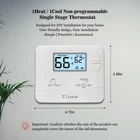High Compatibility: Forced air (gas, oil or electric), Electric furnace, Hot water steam or gravity radiant heat, Heat only systems, Heat pump w/o auxiliary or emergency heat, Millivolt, Gas fireplaces (24V), Floor or wall furnaces, Cool only systems.(TIP: Before purchasing, check to see if this thermostat is compatible with your system.) Not Compatible: Heat pump with auxiliary or emergency heat, Dual fuel/hybrid heating, Electric baseboard heat (110-240 volts), Line voltage, Convectors, Radiant-ceiling heat, Mini split systems and 12V RV systems. Easy to Install and Use: Large terminal blocks with universal sub-base, can be installed within 30 minutes, clear, easy-to-read backlight LCD display and easy controls make for a user-friendly experience. Simple but Powerful Control: Easy-access front-load battery compartment, adjustable temperature differential (swing) for energy optimization and maximum system life, Support temperature display calibration, Convert °C/°F units, compressor delay protection (selectable on or off). Dual Power Supply: Can be powered by 24VAC power or 2 AAA batteries, No common wire (C-wire) required on most systems (only required on heat only and cool only systems).