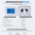 Store New Arrivals Add to Favorite View Feedback Contact Thermostat Non Programmable Heat Pump Thermostat for House 2H/1C, with Large LCD Display of Room Temperature and Humidity Description Item model number M721 Style Heat Pump Thermostat Power Source [User-Determined: 24VAC or Battery] Control Method Remote Temperature Control Type Manual Controller Type Push Button Control Type Button Control Product Dimensions 0.99"D x 4.92"W x 3.73"H Material Plastic Model Name Heat Pump Thermostat Specific Uses For Product Heat Pump Thermostat Included Components Temperature Sensor Country of Origin China Item Weight 5.6 ounces Special Feature Large Display Display Type LCD Mounting Type Wall Mount Color Blue Backlight Shape Rectangular Voltage 24 Volts (AC) Manufacturer Mroinge Brand Mroinge Backlight Yes Non-programmable heat pump thermostat for home up to 2 heat/ 1 cool, it is designed for easy installation and operation. (Kind reminder: Before purchasing, please check if this thermostat is compatible with your old thermostat) Large Numbers Display: The thermostat features a large display with clear and easy-to-read numbers, making it convenient for anyone to check the temperature and humidity levels at a glance. Does Not Work with 110-240V HVAC systems, Does Not Work with 120/240V electric baseboard heat / line voltage systems, and Does Not Work with RV thermostat. Compatible: heat pump systems and central gas, oil, or electric furnace systems, our thermostat can efficiently control the heating and cooling of your home, providing maximum comfort. Power Options: The heat pump thermostat can be powered either by a 24VAC power source or 2 AAA batteries (C-wire is not required), giving you flexibility in choosing the power supply that suits your needs. Temperature Calibration: Our thermostat allows for temperature calibration, ensuring accurate and precise temperature control, so you can enjoy the perfect indoor climate. Compressor Delay Protection: Equipped with compressor delay protection, our thermostat prevents frequent cycling of the compressor, extending its lifespan and saving energy. Separate Heating and Cooling Swing: The heating and cooling swing feature of our thermostat allows for better temperature control, ensuring optimal comfort in your home. with 2-year warranty. Product Description Mroinge M721 Non Programmable Heat Pump Thermostat Mroinge M721 non programmable heat pump thermostat is the perfect solution for homeowners looking for a reliable and easy-to-use thermostat for their heating and cooling systems. With its easy installation process, even Middle-Aged Elderly People can effortlessly set it up without any hassle. The thermostat features a large display with clear and easy-to-read numbers, making it convenient for anyone to check the temperature and humidity levels at a glance. Designed to be compatible with heat pump systems and central gas, oil, or electric furnaces systems, this thermostat offers versatility and flexibility for different heating options. You can rest assured knowing that it will seamlessly integrate with your existing system. The thermostat operates on 2 AAA batteries, ensuring long-lasting and reliable performance. With the heating and cooling swing feature, you have the flexibility to set the temperature range within which the thermostat will activate the heating or cooling system. This allows for optimal comfort and energy efficiency. Additionally, the thermostat offers temperature calibration, allowing you to fine-tune the temperature readings for precise control. One of the standout features of this thermostat is the built-in compressor delay protection. This feature helps to extend the lifespan of your heating and cooling system by preventing frequent cycling, reducing wear and tear on the compressor. In summary, the non programmable heat pump thermostat is a reliable and user-friendly option for homeowners seeking a hassle-free solution for their heating and cooling needs. Its easy installation, large display, compatibility with various systems, and additional features such as temperature calibration and compressor delay protection make it a top choice for anyone looking for a non-programmable heat pump thermostat. ABOUT US We offer the best prices around on high quality products. Our E-store includes media such as books, movies, music and games while offering electronics, toys, sporting apparel, clothing, tools, general home, garden items and more. SHIPPING We are always working hard to ensure your package arrives as soon as possible. Please understand that some factors like weather, high postal traffic, and the performance of shipping companies are outside of our control. We offer free shipping to the lower 48 states and ship within 2 business days of payment, usually sooner. We do not accept P.O. Boxes. Please provide a physical address. RETURNS We offer a 30-Day Return Policy on items which you are not completely satisfied with. You have the option for a full-refund or an exchange of the item. No returns are available on items shipped outside of the USA. PAYMENT We accept PayPal. CONTACT US This page content is yet to come Please ad us to your favorite seller and visit again later Thank You CUSTOMER SATISFACTION We try our very best to make sure every customer is completely satisfied. If there's a problem, message us! We're happy to help.