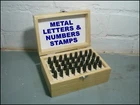 NUMBER AND LETTER STAMP SET IDENTITY AND SECURITY FOR STAMPING VIN PLATES CHASSIS OR ENGINE SECURITY MARK ITEMS BIKES, LAWN MOWERS, ALLOY WHEELS, TOOLS ONCE STAMPED, CAN NOT BE REMOVED! PROVIDE A PART NUMBER OR ID TAG WHEN SELLING NEW OR RECONDITIONED ITEMS USEFUL WHEN GETTING RETURN OR UNDER WARRANTY ITEMS DATE STAMP SIMPLY PLACE NUMBER AND STAMP WHERE NEEDED NEAT STORAGE CASE INCLUDED Letters from A Z and the & symbol Numbers 0-8 (use the 6 as a 9) Length 60mm Letter depth 1mm Letter size 5mm Wooden storage case organizer Case size: 167mm x 102mm x 70mm hardened and tempered steel IDEAL FOR SECURITY MARKINGS ON MACHINERY, TOOLS AND OTHER BELONGINGS packaging or brand may vary, but will always be the same item and quality POSTED FIRST CLASS