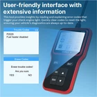 Comprehensive Code Reading & Clearing This diagnostic tool provides detailed insights by reading error codes that trigger your check engine light and explaining their meanings, helping you understand the issues. Clear codes quickly to reset the light and ensure your vehicle's diagnostics are always accurate and up-to-date. Compatible with all OBD II/EOBD protocols for versatile use. Advanced Diagnostic Features for Thorough Analysis Utilize the freeze frame function to capture critical data at the moment a fault occurs, enabling precise problem diagnosis. The I/M readiness checks verify if all required monitor tests are completed post-repair, ensuring emissions-related systems are functioning correctly, which is essential for passing smog tests. Monitor your vehicle's performance with real-time data stream information, including advanced Mode 8 diagnostics for comprehensive vehicle health checks. The oxygen sensor test ensures your vehicle's emission control system meets required standards, promoting eco-friendly and efficient performance. Access comprehensive vehicle data, including VIN and calibration details. The fault code library offers clear definitions and solutions for each code. Additionally, monitor your car’s battery health with accurate voltage readings, ensuring optimal vehicle performance at all times. Multi-Language Support & Hassle-Free Operation Designed for global users, the scanner supports 8 languages: English, German, Italian, Dutch, French, Spanish, Chinese and Russian, ensuring accessibility for a wide range of users. Its easy plug-and-play setup, combined with a 2.8-inch color display, ensures straightforward operation and efficient diagnostics, ideal for both professional mechanics and car enthusiasts.
