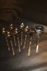 This listing is for a great Oneida Community -- Madrid pattern with the black inset trim. This is for 6 soup spoons, one ladle and a meat serving fork. Excellent gently used condition. Smoke free home. Shipping: Calculate per the calculator below. Outside U.S. contact for shipping rates. New items added daily so make sure to add us to your favorites.