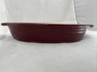 The Pampered Chef New Traditions small oval cranberry baker is a stoneware baking dish with a capacity of 2 cups. It’s the perfect size for baking or reheating small portions in a conventional oven or toaster oven. Made w natural lead-free clay and glaze. The item measures 10 inches in length, 6 inches in width, and 1 3/4 inches in height. It is recommended to hand wash this baker for proper care. This baker is new, without original box. The original use & care information included, along with the nylon pan scraper for cleaning. Item has been stored in a smoke free pet free home.