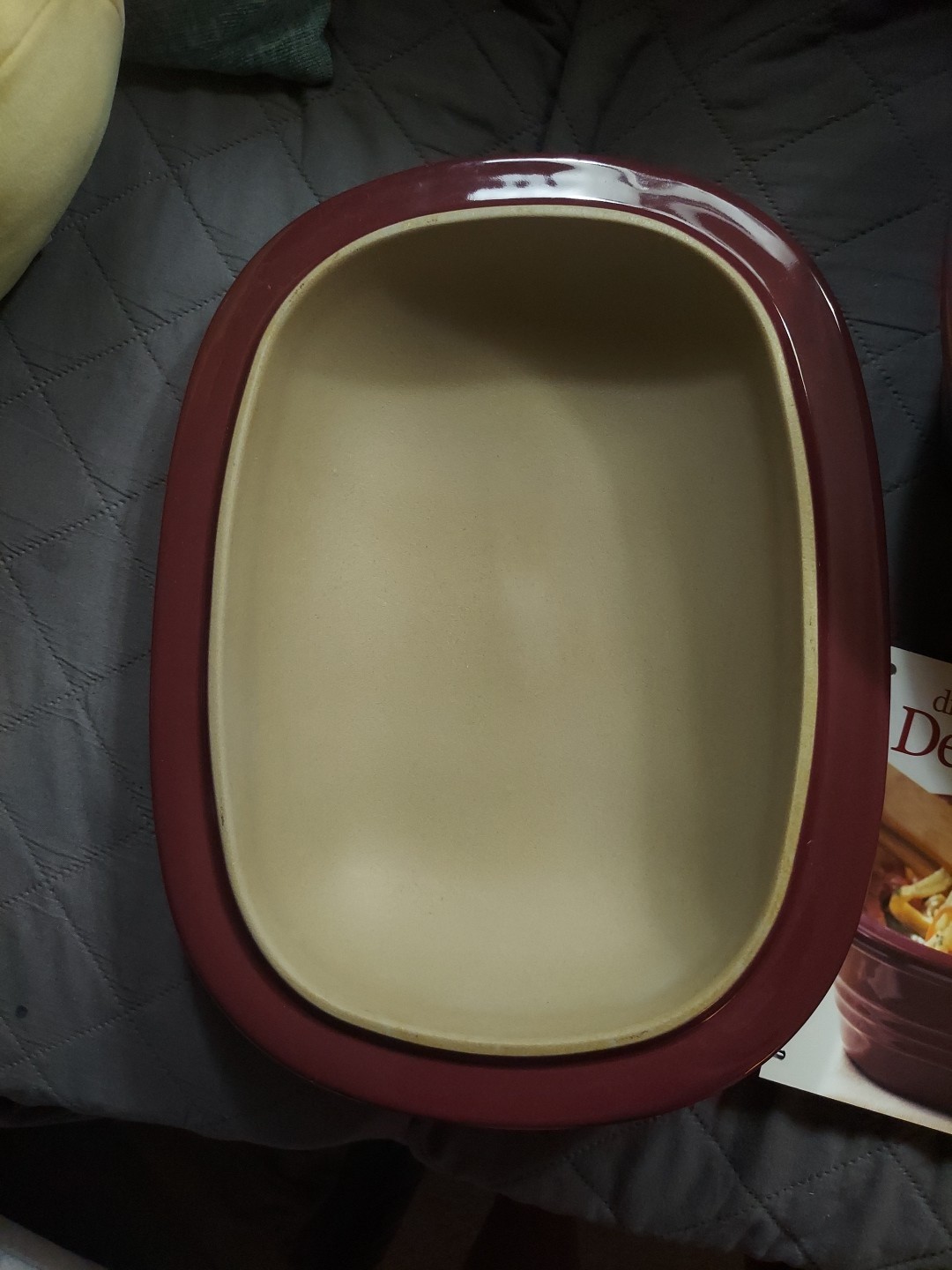 Pampered Chef 3.1 Quart Stoneware Deep Roaster Baker Cranberry With Cookbook