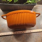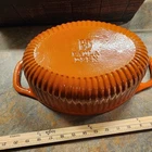 The Paula Deen Cast Iron 5 Quart Dutch Oven in orange and white is a versatile and heavy-duty cooking piece for your kitchen. This model, the Paula Deen A35, is suitable for use on both electric and gas ovens. Made from cast iron, known for its durability and heat distribution, this Dutch oven is perfect for a variety of cooking tasks. Whether you're searing a steak, baking a casserole, or making a stew, this oven will provide even heat and retain moisture for delicious results.