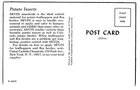 Potato Insects Ad Card for SEVIN Insecticide Postcard Vintage postcard. See scans/photos for condition and details, using the zoom feature to see the full detail and condition of the card. Some postcards may have creases, edge and corner wear, pencil/pen markings, fading, yellowing, or staining consistent with their age and storage. Please reach out with questions or if you require additional photos. Items are mailed quickly, sleeved and in a rigid envelope. Visit often as postcards are added daily. Thank you for supporting my small business!