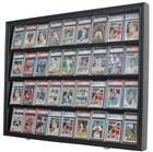 Black Finish. Cards NOT Included. Collector's choice display case for sports graded cards graded/ungraded up to 5.5" tall. . Please measure cards to make sure they are no more than 5.5" height. So, this would only fits graded Professional football, basketball, baseball, hockey trading cards in plastic cases that are no taller than 5.5". You can display 36 graded cards or 48 hard sleelves total. Dimensions: 30.5" W X 24.25" H X 2"D, baseball card display case is made of Grade A+ acrylic, with 96% transparency, 98% UV protection. It will protect the cards to fade while providing very transparent view for the best showing of the cards. The lockable anti-theft locks keep your sports cards memorabilia or collectibles from inquisitive hands. Metal brackets are already installed on the back for hanging. Wall hooks included. While this would be of great use if you are a card collector it can also be a great unique gift for someone who collects sports trading cards are an hobby.