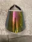 Never worn! Tried on Some small scratches just from being in closet, but not very visible. Clean band. Block the sun and the haters with the stylish, protective, and functional Pearl Paparazzi Visor from SAINT CHIC. This full-coverage face visor features an adjustable lens with 7 settings for optimal sun-blocking and full-face protection. The pearl rainbow lens adds a unique and eye-catching flair, making it perfect for any season. The headband is breathable with moisture-wicking properties, ensuring comfort year-round. Ideal for outdoor activities, from beach days to sports events, this visor keeps you covered and stylish