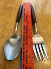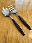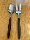 Set 2 Vintage Hearthside Serving Fork & Solid Spoon Stainless Made in Japan Brown Handle Vintage used condition- refer to pics Scratching scuffing from wear and use