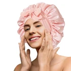 Pink Bonnet Satin Silk Hair Bonnet With Tie Band for Sleeping Large Bonnets Hair Wrap with Adjustable Straps Hair Sleep Caps for Women Curly Braid Hair [Size]: The pink bonnet size is adjustable. Under normal conditions, the diameter is 15.7 inches, suitable for people with a head circumference 19-24 inches. [Double layer material]: The satin bonnet is designed with double-layer fabric can wrap the hair well, and after using the hair mask, it will not stain the sheets when sleeping. [Silk material]: The soft silk bonnet material is used to fit the skin, there will be no inappropriate places, and the texture is soft enough to make it comfortable to use anyway. [Applications]: This adjustable bonnet can be used to wrap the hair while sleeping so that it will not be messy, and it can also protect the hair from getting wet when taking a bath. [Multifunctional]: This sleep bonnet Can also be worn during makeup, bathing, housework