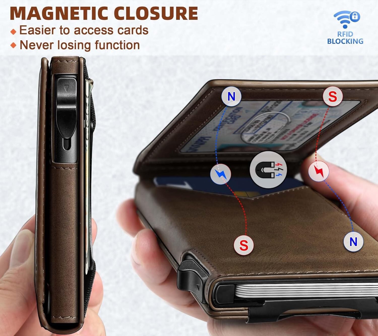 This wallet is a game-changer! The sleek magnetic flip design makes accessing cards effortless, while the 9 slots and money clip keep everything organized. The leather feels premium, and the pop-up mechanism is so smooth—perfect for daily use without the bulk. Love how it fits perfectly in my pocket while holding all my essentials. Highly recommend for anyone wanting style and practicality!