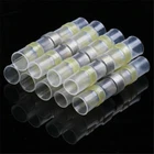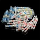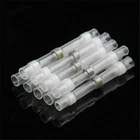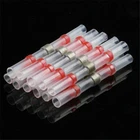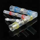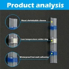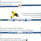 Specification: Shrinkage ratio: 3:1 Material : Polyolefin & Tin Solder Color : Red, Blue, White, Yellow Minimum temperature for solder to melt: 138°C (280 ℉) Minimum shrink temperature: 80°C (176 ℉) Operating temperature :-55℃ - 125℃ Note: The Minimum and Maximum Temp. are the temp. for connector surface. Features: 1. Heat shrink butt connectors safe for speaker wire, automotive, motorcycle, marine wire connectors,DIY electrical wirings and other outdoor applications. 2. Easy to Use,Crimpless Only need heat—A simple solder seal wire connectors—Strip Wires, Insert into electrical terminal, and Heat. Save time and frustration white improving efficiency. 3. Waterproof Solder Wire connector:Electrical solder wire connectors Polyolefin heat shrink tubing in outside and hot melt solder rings in inside effectively improve waterproof performance of Solder heat butt connectors. Tips: 1. Keep rotating during heating with a heat gun. 2. Be careful not to heat over from the beginning, it can cause tube melting damage while the solder ring is still not melting. 3. Do not a too close heating gun on the solder connector, keep about 5cm from heat targeted connectors surface.