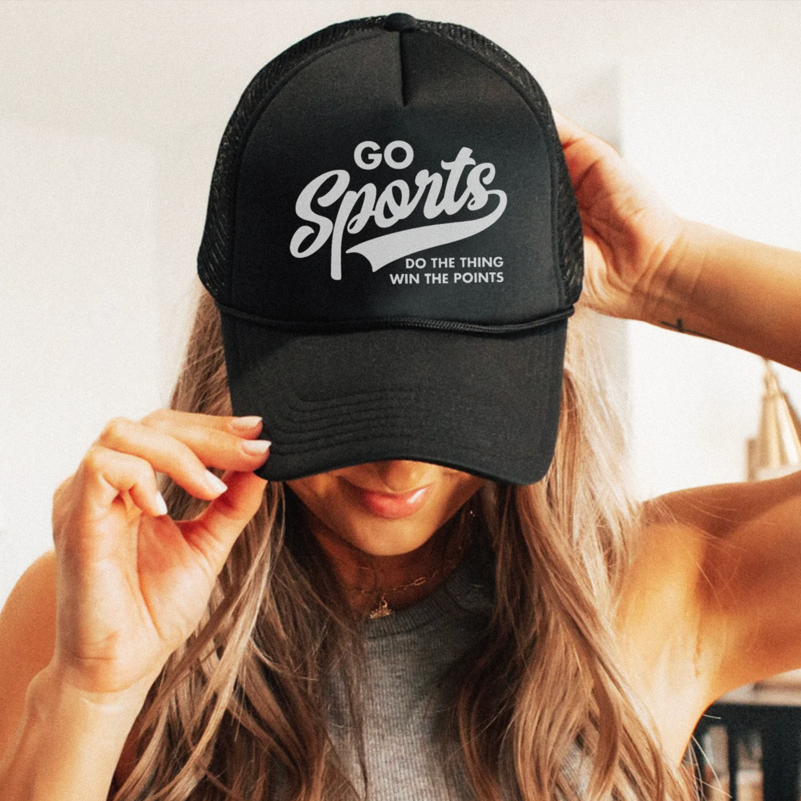 🏈 Go Sports! Do the Thing, Win the Points! 🎉 Make your Super Bowl party or sports viewing event extra hilarious with this funny sports-themed trucker hat! Whether you’re a die-hard fan or just there for the snacks, this hat lets everyone know you’re here for the good vibes and good times. With the cheeky phrase "Go Sports – Do the Thing, Win the Points," it’s the perfect accessory for sports enthusiasts and casual spectators alike. ✨ Hat Features: * Material: Made from 100% durable polyester for long-lasting wear. * Design: Structured with a firm front panel and seamless foam front panel with lining for a sleek, polished look. * Visor: Slightly curved with 6 rows of stitching and a matching fabric undervisor. * Comfort: A matching color sweatband adds comfort for all-day festivities. * Fit: Adjustable plastic snap closure ensures the perfect fit. * Size: One size fits most adults, measuring 22.8 inches (58 cm) in circumference. 📦 Processing Time: Hats take 1–7 days to make and ship. Please plan accordingly to have your hat ready for game day! 🎉 Why You’ll Love It: * Perfect for Super Bowl parties, sports bars, or any game-day gathering. * Hilarious icebreaker and conversation starter. * Lightweight and comfy for all-day wear. Order now and let the good times (and the points) roll! Tags: funny sports trucker hat, go sports hat, sports viewing party hat, super bowl party hat, hilarious sports fan hat, casual fan accessory, sports-themed hat, funny game day hat, sarcastic sports hat, unique sports gifts, adjustable trucker hat, sports party accessory, go team hat, funny snapback hat