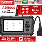 TOPDON AD500S Car Diagnostic ResetTool ABS SRS Engine Code Reader OBDII Scanner 2024 Newest-TOPDON ArtiDiag500S When your vehicle needs repairs, no tool is more helpful to help you figure out what’s going on than a powerful OBD2 scanner. AD500S is the one that often tells you what that problem is and helps fix it in no time. No matter you are a technician, do it yourself folk, car dealer, home mechanic, automotive student, backyard mechanic, weekend DIY, individual car owner, AD500S do give you the utmost convenience. · 4 Systems Diagnoses: Read fault code, clear fault code, and display live data for Engine/Transmission/SRS/ABS, find out and root out the problems in time. · 5 Reset Functions: Oil Reset, BMS Reset, Throttle Adaption, ABS Bleeding, and DPF Reset, helping you to reset certain parameters once the repairs are accomplished. · Full OBD2 Function: Tell you the exact reason why your engine light is on. One TOPDON AD500S can get you where you want to go, reliably and repeatedly. · Auto VIN: Quickly auto search VIN and get the information of make, year, and model; save your repair time. · One-Click Update: Pop-up messages will indicate newer software is available and you can update all with just one click. · Diagnostic Report: Generate a comprehensive report and share results with your clients. · Feedback: Provide customized repair suggestions from our certified professionals. · DTC Library: Give you the meaning of the DTCs, save google searching time when interpreting the error codes. Deliver Deep and Comprehensive Diagnoses for 4 Major Systems Use this car system diagnostic tool TOPDON AD500S to deep dive into 4 systems (engine/ transmission/SRS/abs) for a health check by reading codes, accessing live data for any fault notifications and clearing the codes after repair or replacement. Engine: As the most important, precise, and complex assembly in the car, the automobile engine has a high probability of failures such as abnormal vibration, carbon deposition, oil leakage, water leakage, high temperature, abnormal noise, engine misfire, inability to start, etc. If you are a personal car owner who would like to figure out the issues by yourself and not be stranded in the middle of nowhere, try the scanner TOPDON AD500S. It will lead you to the causes, fix the issue effortlessly and clear the fault codes. Transmission: There might be something wrong with your transmission if the car can't run, the starting or driving shock is too high, or the transmission is abnormally loud, etc. The scanner AD500S will assist you detects the exact faulty code, displaying the live stream, and help you to analyze the issues. The user-friendly design makes it is easy to start with no matter whether you are a mechanic or an amateur car mechanic. SRS: When the SRS MIF lights up on your dashboard, you need to be alarmed. To make sure the SRS on your vehicle works decently, use the AD500S to do a complete and deep diagnostic for your SRS system, find out and fix the possible issue in time. Timely diagnosis to fully protect your driving safety. ABS: Multiple possible causes such as low levels in the fluid reservoir, broken wheel speed sensors, or the system being turned off could lead to an abnormal display of ABS light. AD500S help you to process a comprehensive diagnostic to the ABS system, find out the fault code, display the live data; clear the code, and even reset the ABS light after replacement. 5 Most Commonly-Used Maintenance Functions The Malfunction Indicator Light (MIL) indicates a detected problem with the car and alerts the driver about the issue. The diagnostic scanner AD500S can not only help you to investigate the cause but also can reset some of the parameters and turn off the MILs after you fix the issues: Oil Reset (for 53 brands): Even when fresh oil is added, the oil change light won't turn off on its own. AD500S will help you to do the job and turn the annoying light off. BMS Reset (for 31 brands): Help reset the battery after replacement, and thus avoid situations of insufficient charging and decreased life of the battery. Throttle Adaption (for 37 brands): If the idling speed of the vehicle is too high or unstable after cleaning the throttle, AD500S will help you adapt the throttle parameter. DPF Reset (for 39 brands): Help you clean and empty a Diesel Particulate Filter. The soot created by the process of combustion is burnt off to make sure that the filter does not become blocked and that it can carry on trapping more soot. ABS BLEEDING (for 34 brands): After replacing the ABS pump, brake cylinder, brake oil pipe, etc., there is air in the ABS or in the brake pipeline and leads to weakness or malfunction of the brake. AD500S can help you bleed the air to ensure safe driving and effective braking. *Note: The specific function is dependent on your car’s make, model and year. Reach us for details. Fast-Access Option for Engine and Emission-Related Issues Diagnostics TOPDON AD500S has a full OBD II Diagnostics function, allowing mechanics to carry out a quick test on the engine systems of 99% of OBD II vehicles. Read Codes: Display the fault code when emission-related faults occur or malfunction indicator lights (MILs) turn on. Clear Code: After repair or replacement, delete the codes from the vehicle’s onboard computer, “Freeze Frame” data, and producer-specific enhanced data. Read Live Data: Allow viewing of live or real-time PID data of vehicle’s computer module(s). Read I/M Readiness: Check the operations of the Emission System on OBD2 compliant vehicles. Read Freeze Frame Data: Allow the technician to view the vehicle’s operating parameters at the moment a DTC (Diagnostic Trouble Code) is detected. O2 Sensor Test: Test the oxygen (O2) sensors to identify problems related to fuel efficiency and vehicle emissions. On-board Monitor Test: The On-Board Monitor Test for non-CAN-equipped vehicles retrieves and displays test results for emission-related power train 