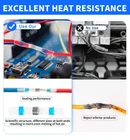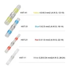 In order to avoid unnecessary misunderstanding, please check the package quantity carefully before buying. Package includes: 50/100/200/500/1000 connectors set(The items you select) Features: An easy one step connection of wires, soldered, insulated and sealed Can be ideal use in marine and automobile applications Polyolefin tubing in outside and hot melt adhesive in inside Solder and seal and with advanced waterproof function Polyolefin heat shrink butt connectors improved pullout strength, provides seal, strain relief, cable check, and insulation Specification: Insulation Sleeves: PE Terminal Body: Tin Ring Colors : Red, Blue, Green, White, Yellow Type and Size: White Heat Shrink Connectors: Suits cable/ wire sizes AWG 26-24 / 0.25-0.34mm2 Red Heat Shrink Connectors: Suits cable / wire sizes 18-22AWG / 0.5-1.0mm2 Blue Heat Shrink Connectors: Suits cable / wire sizes 16-14AWG / 1.0-2.5mm2 Green Heat Shrink Connectors: Suits cable / wire sizes 16-18AWG / 0.75-1.25mm2 Yellow Heat Shrink Connectors: Suits cable / wire sizes 12-10AWG / 4.0-6.0mm2