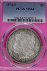 Toned 1878 S MS 64 Morgan Silver Dollar PCGS Graded Certified Authentic Slab 262