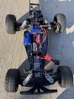 Traxxas Rustler Drag really fast runs perfectly fine noting wrong no issues or noting a LOT of upgrades parts added and comes with a 3s battery.