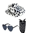 Features: Cosplay Costume Wide Brim Cowboy Hat Set: The lovely wide brim cowboy hat with fashion appearance, featured with sequin pentagram, trendy and better show the personality and highlight your unique aesthetic, heart shape sunglasses & pink handkerchief suitable use for party dressing. Cool Stylish Top Hat: Our western stylish top hat carry with wide brim, dairy cow pattern and sequin , fashion and worry of clash with others, perfect elegant clothing accessories for your cosplay party, theme parties, night club dressing accs and so many celebration occasions. Universal Size: The top hat with fashion and designed pattern, universal size, suitable and fit for mostly normal hoods circumference, before purchase please make sure your hoods covers the above size. Selected Material: The top hat use high-grade qualified polyester material, great stitching elegant sequin decoration, color printed does not easy to fade, soft and skin friendly for daily wear. Perfect Gift: Our cowboy hat unique and heart-felt fashionable accessories for your special persons, coworkers, makes sentimental surprise and great gift for birthday, Christmas, New Years Day, anniversaries, dating, cosplay party or other occasions. Specifications: Product Dimension: approx. Hat size 32x42x18cm/12.6x16.53x7.08 inch Option: StyleA(Black Hat, Sunglasses, Scarf)/StyleB(Hat) Material: Polyester Package Includes: Style-A: x Wide Brim Cowboy Hat, x Kerchief, x Sunglasses B: x Wide Brim Cowboy Hat note: Please allow 1-2cm errors due to manual measurement. Due to the difference between different monitors, the picture may not reflect the actual color of the item.