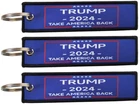 SPECIFICATION: Set of 3 Trump 2024 keychains, 5x1.2 Inch flag with 1.2 inch diameter key ring PREMIUM MATERIAL: 100% Made of high-quality polyester woven labels and high-quality stainless steel guarantees the sturdy little keychains is built to last for a long time even with rigorous usage.