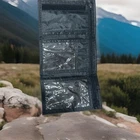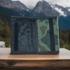 This trifold wallet for men features a camouflage design with army theme accents. Made of durable nylon and microfiber fabric, it includes a secure Velcro strap and zipper for cash storage. The ultra-thin design makes it lightweight and convenient for everyday use.