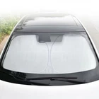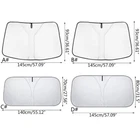 Features: Fits perfectly to most sedans and Size SUVs. Find your vehicle in the size chart. High-quality reflective polyester- material blocks heat & sun. Keeps your vehicle cool and protects against damage caused by hot sunlight. Quick and easy to install, and quick and easy to fold and store away. Reflective aluminum foil combine with bubble material make the cooling effect is more significant. Protect instrument desk, steering wheel and chairs, Specifications: Material:Polyester Type For Car,For SUV Size:Approx.145x93cm/57''x36.6'' ,140x70cm/55.1''x27.5'' (For Car),145x80cm/57''x31.5'' (For SUV) Package Includes: 1x Windshield Sunshade note: Please allow 1mm errors due to manual measurement. Due to the difference between different monitors, the picture may not reflect the actual color of the item.