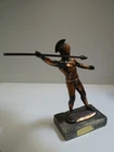 VINTAGE CAST METAL COPPER PLATED STATUE SOUVENIR GREEK ROMAN SOLDIER WITH SPEAR FIGURINE ON A MARBLE BASE - MISSING A SHIELD GOOD USED CONDITION 18.5 CM HIGH SEE PHOTOS FOR BEST GUIDE TO CONDITION I AM LISTING SOME OTHER ESTATE PIECES I can combine for postage. CHECK MY OTHER LISTINGS FOR MORE