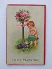 Valentine Postcard Cupid Gardening Plants Pink Roses Gabriel Series 408 Germany Antique vintage original embossed postcard. Has corner creases, rounding, and age wear. Red border is off set. Gabriel logo and series 408 on back. Writing on back but non posted. Stock# va21. Additional vintage Halloween, Santa, Christmas, holiday postcards, are in our store. SHIPPING Bundle and save by using cart and making single payment. International buyers are responsible for any import fees/taxes. ABOUT US Seller of vintage ephemera, collectibles, retro gifts, advertising, artwork, vinyl records, pinball and arcade game flyers and parts, Mad magazines, antique Halloween & holiday postcards, Christmas items, super hero memorabilia, horror themed art, fun stuff. Any questions about this item please just ask.